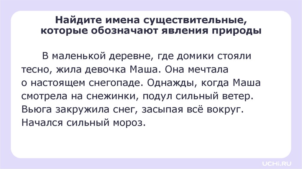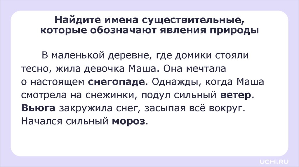 Найдите имена существительные,которые обозначают явления природы