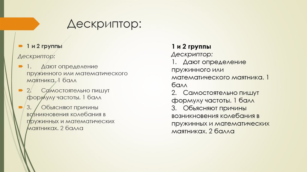 2. Решают задачи на определение периода и частоты пружинного маятника. 1 балл