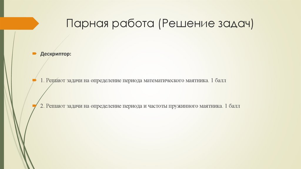 1. Решают задачи на определение периода математического маятника. 1 балл