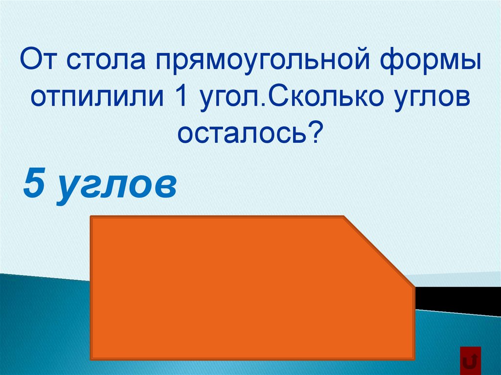 От стола прямоугольной формыотпилили 1 угол.Сколько углов