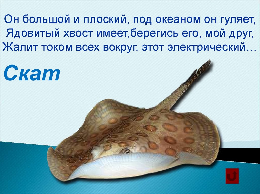 Он большой и плоский, под океаном он гуляет,Ядовитый хвост имеет,берегись его, мой друг,