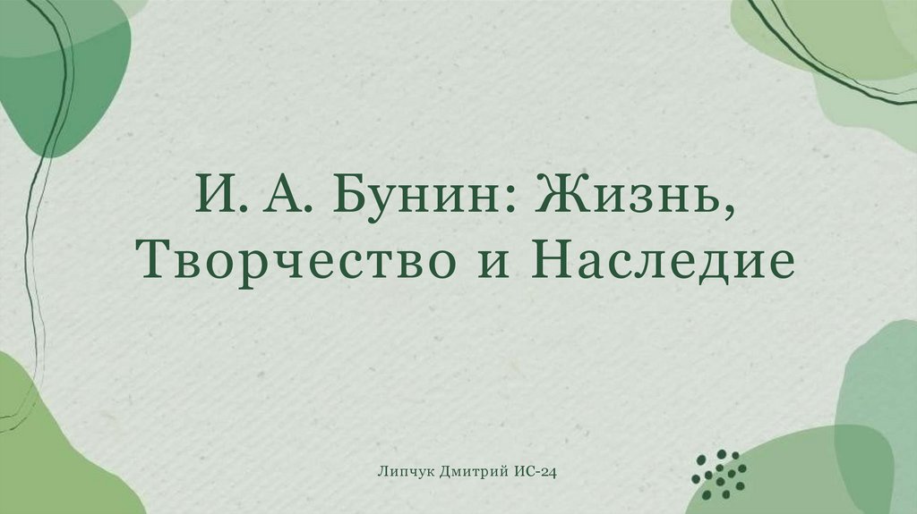 И. А. Бунин: Жизнь,Творчество и Наследие