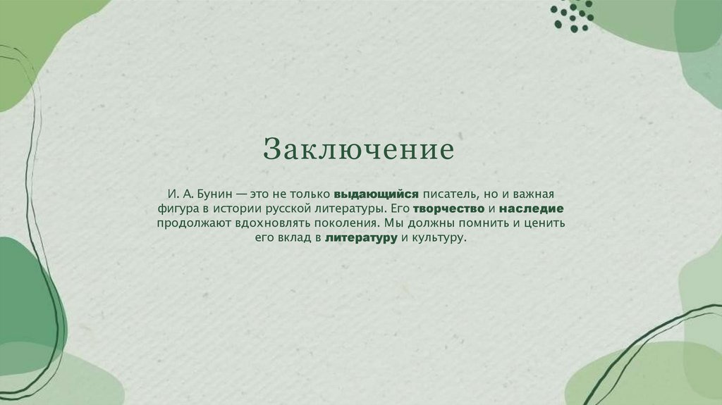 ЗаключениеИ. А. Бунин — это не только выдающийся писатель, но и важная