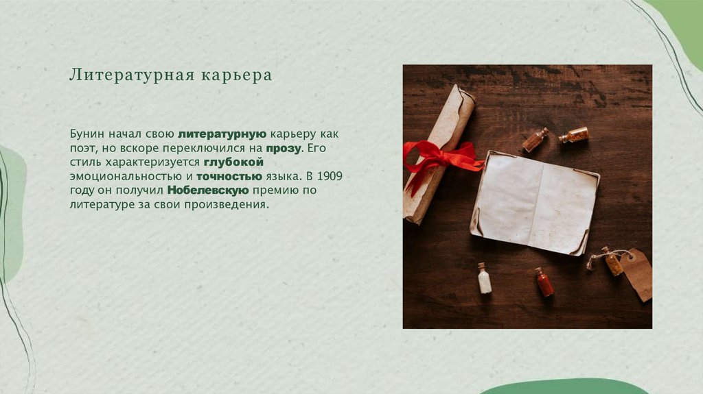 и творческий стиль. Бунин рано начал писать, и его первые произведения