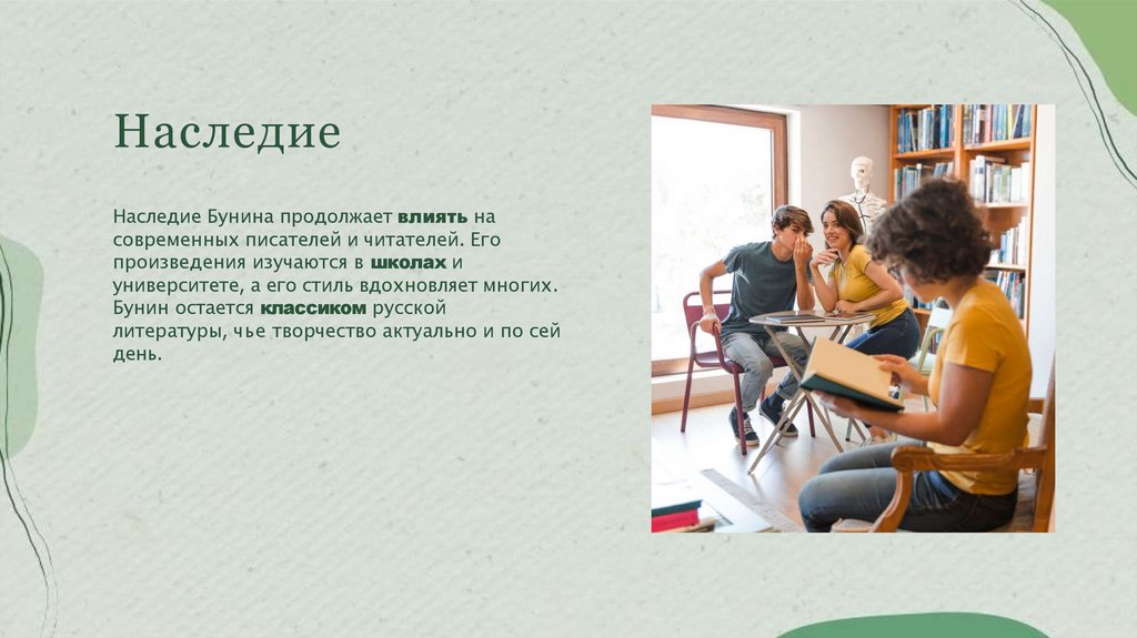 Влияние на литературуБунин оказал значительное влияние на русскую