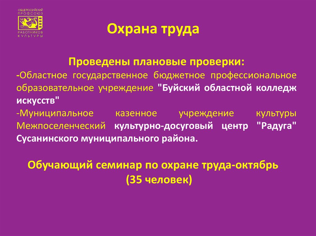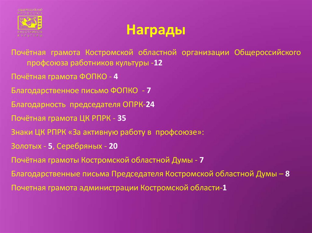 Костромская областная организация Общероссийского профсоюза работников культуры Итоги работы за 2023 год