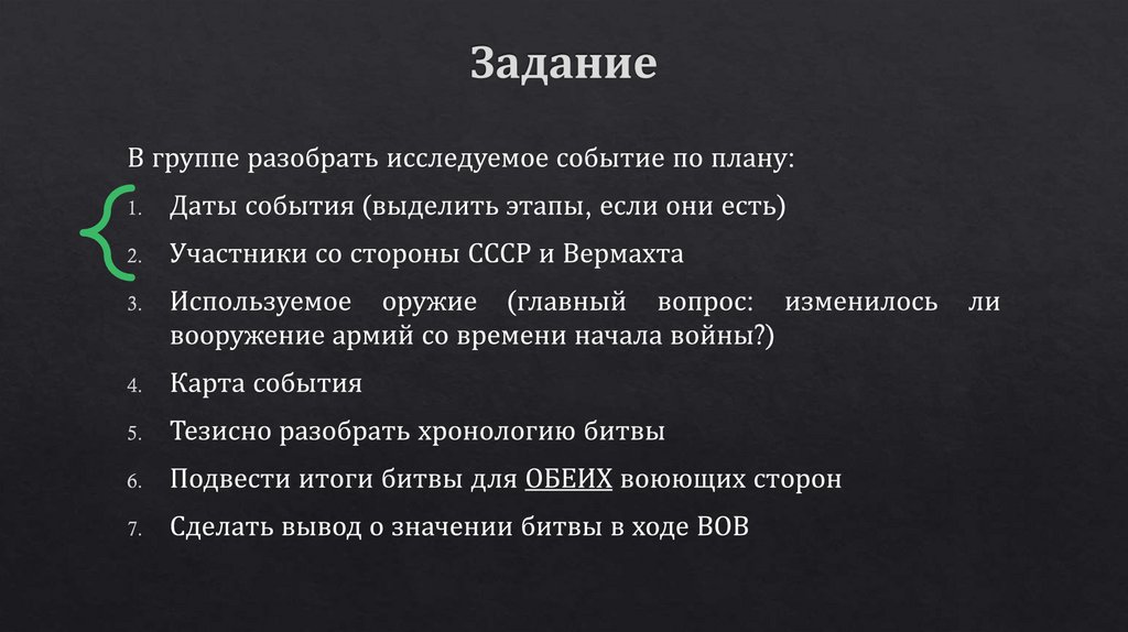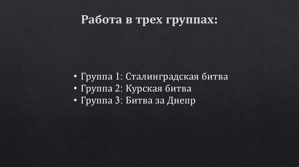 • Группа 1: Сталинградская битва• Группа 2: Курская битва