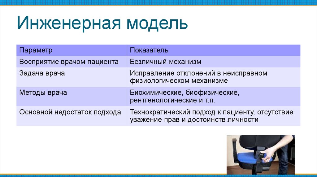 Модели взаимоотношений врача и пациентаИНЖЕНЕРНАЯ МОДЕЛЬ (по Роберту Винчу)
