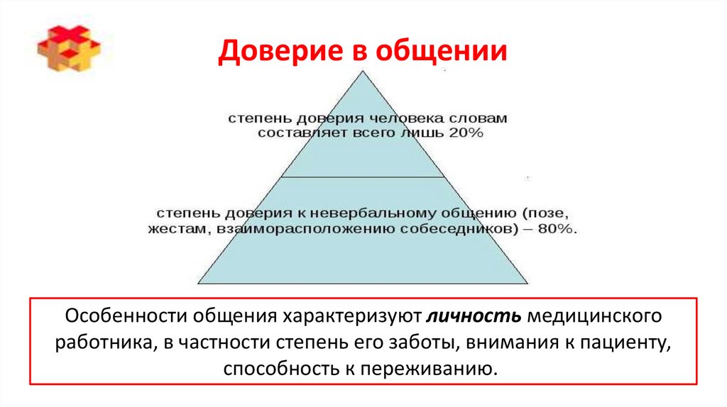 Доверие в общенииОсобенности общения характеризуют личность медицинского