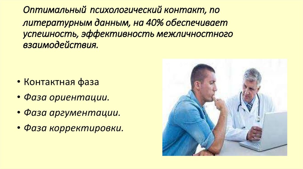 Оптимальный психологический контакт, политературным данным, на 40% обеспечивает