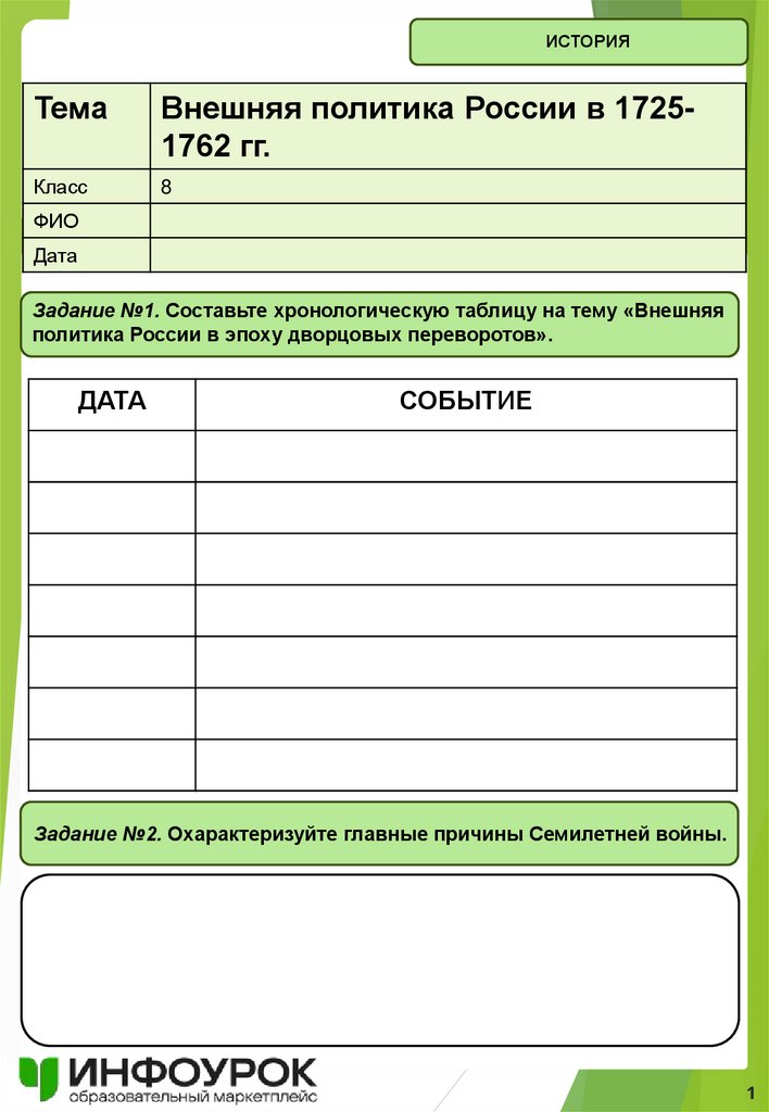 Задание №1. Составьте хронологическую таблицу на тему «Внешняя