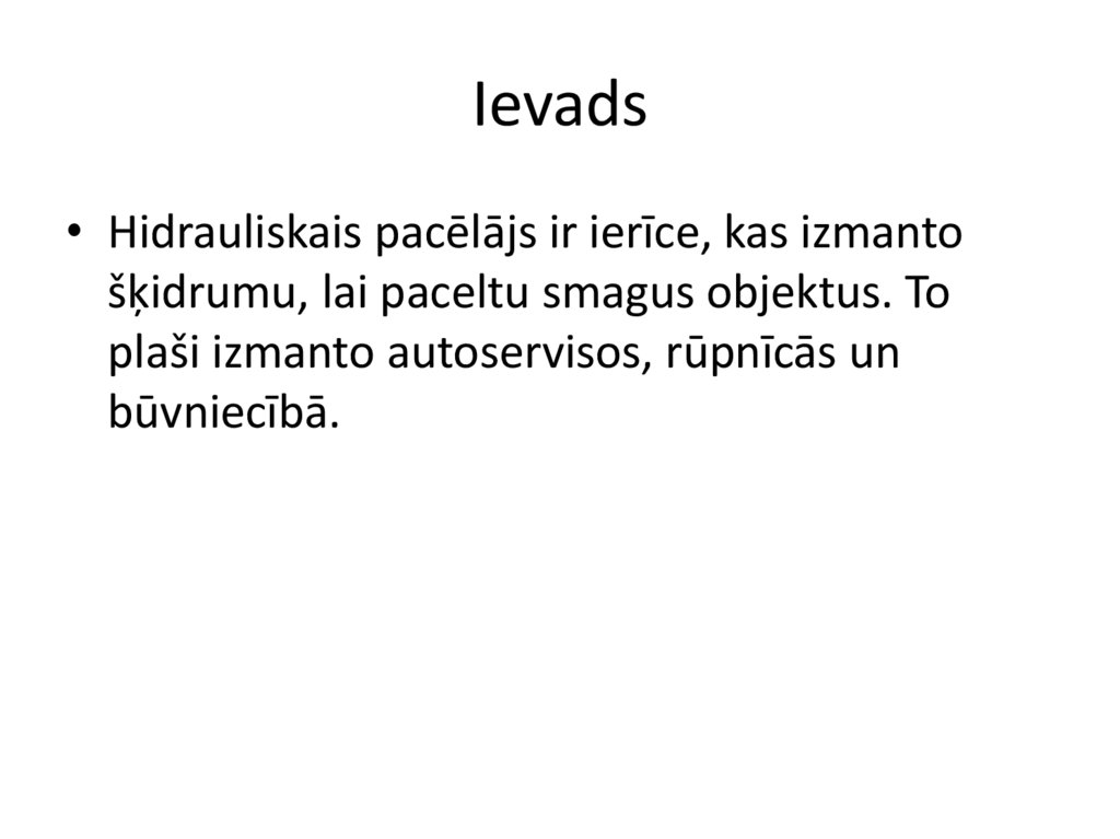 Ievads• Hidrauliskais pacēlājs ir ierīce, kas izmanto
