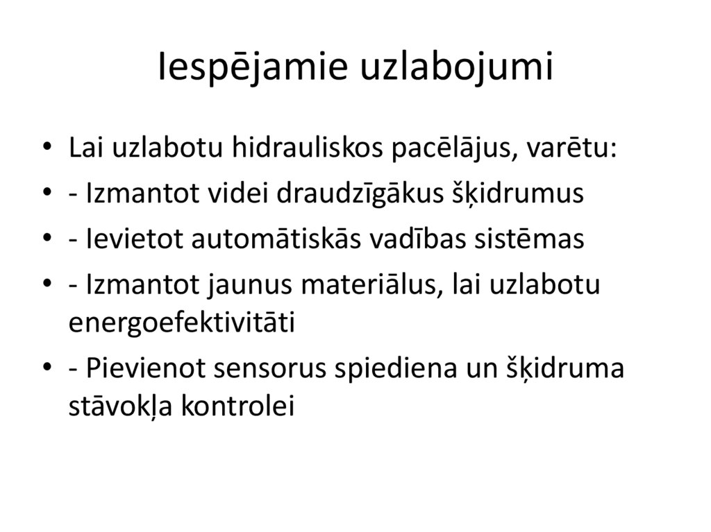 Iespējamie uzlabojumi• Lai uzlabotu hidrauliskos pacēlājus, varētu: