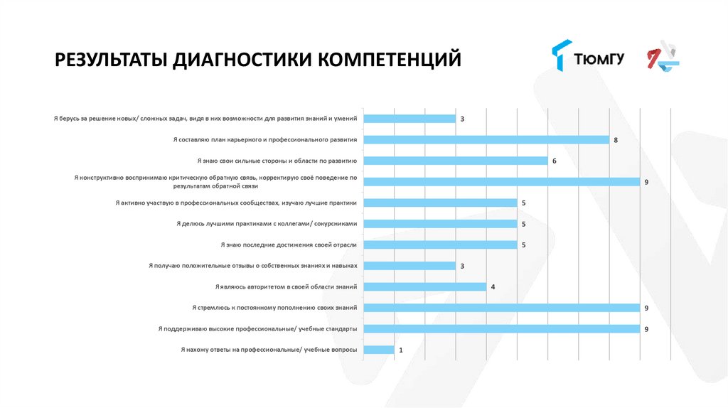 РЕЗУЛЬТАТЫ ДИАГНОСТИКИ КОМПЕТЕНЦИЙЯ берусь за решение новых/ сложных задач, видя в них возможности для развития знаний и умений