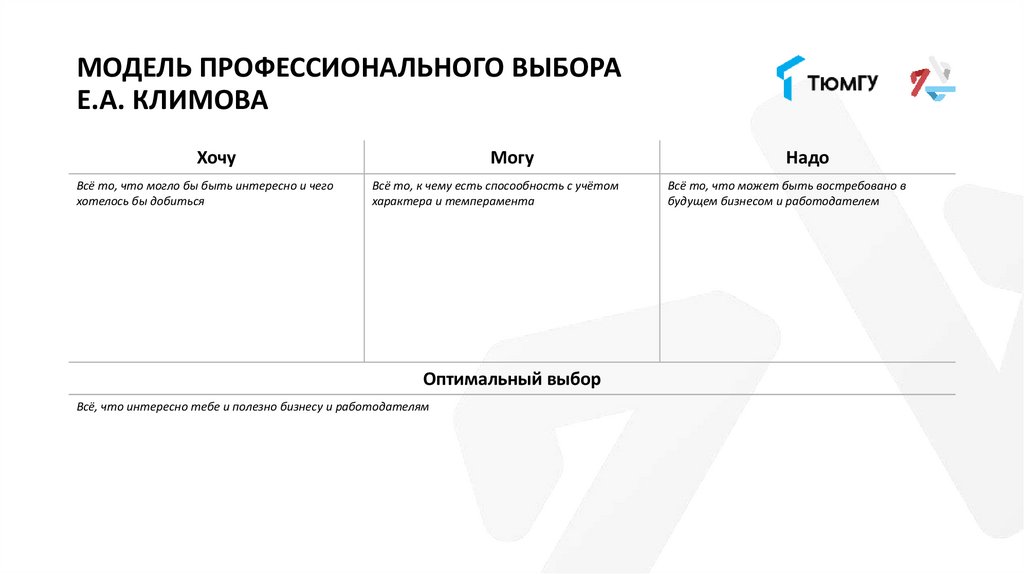 МОДЕЛЬ ПРОФЕССИОНАЛЬНОГО ВЫБОРАЕ.А. КЛИМОВА