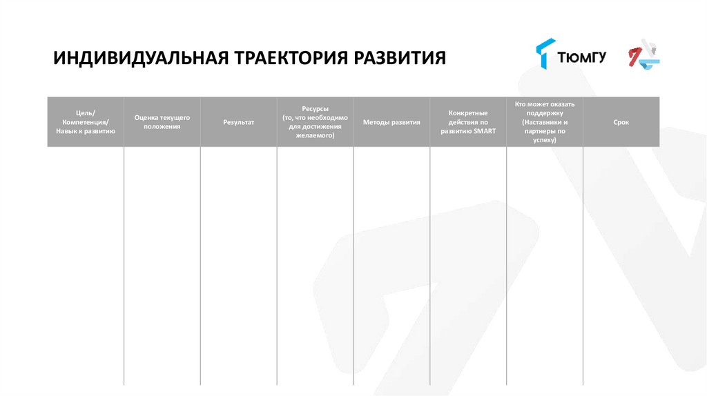 ИНДИВИДУАЛЬНАЯ ТРАЕКТОРИЯ РАЗВИТИЯЦель/