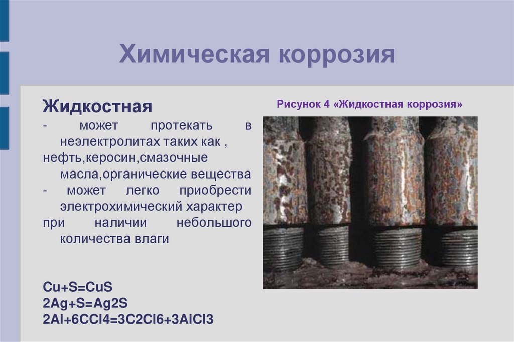 Коррозия вызывается химической реакциейметалла с веществами окружающей среды,