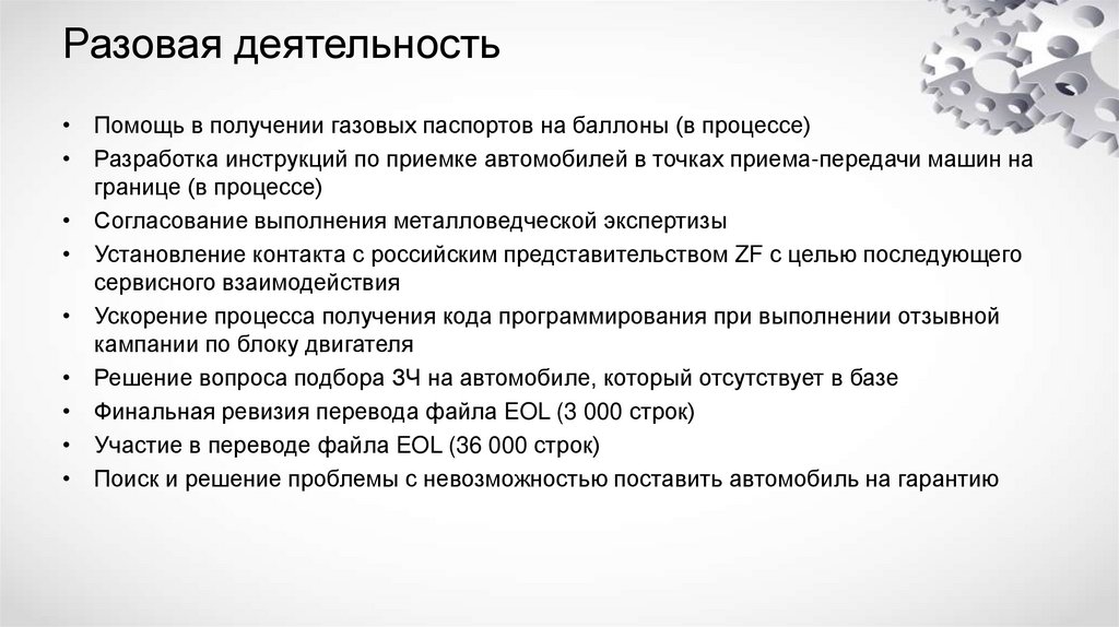 Разовая деятельность• Помощь в получении газовых паспортов на баллоны (в процессе)