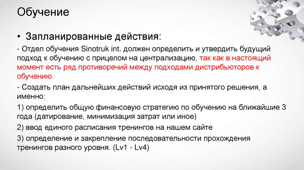 - Отдел обучения Sinotruk int. должен определить и утвердить будущий