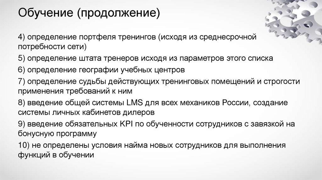 Обучение (продолжение)4) определение портфеля тренингов (исходя из среднесрочной