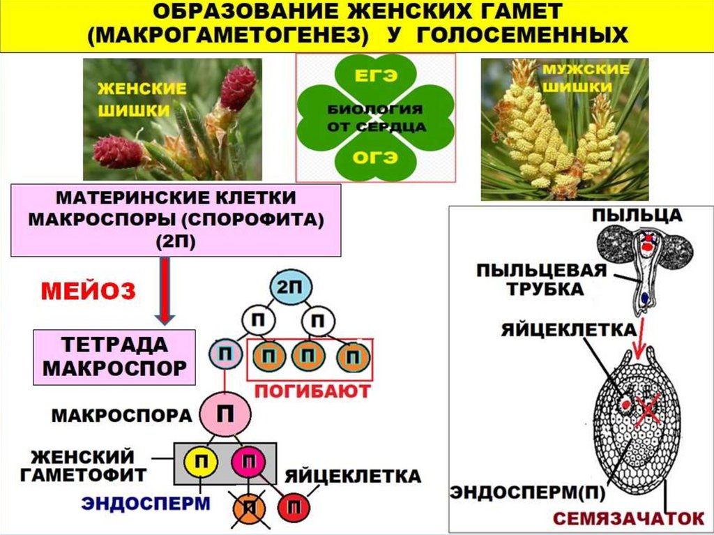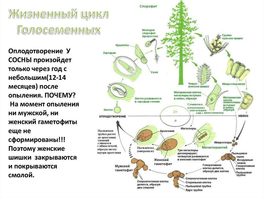 оплодотворения, в отличие от Покрытосеменных!!!( у них – 3 п, после