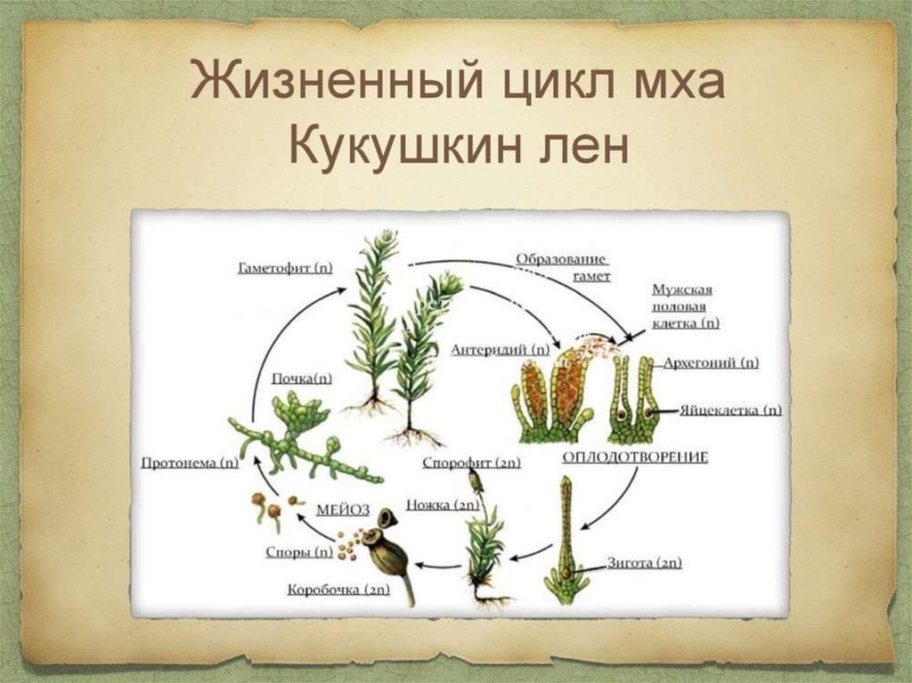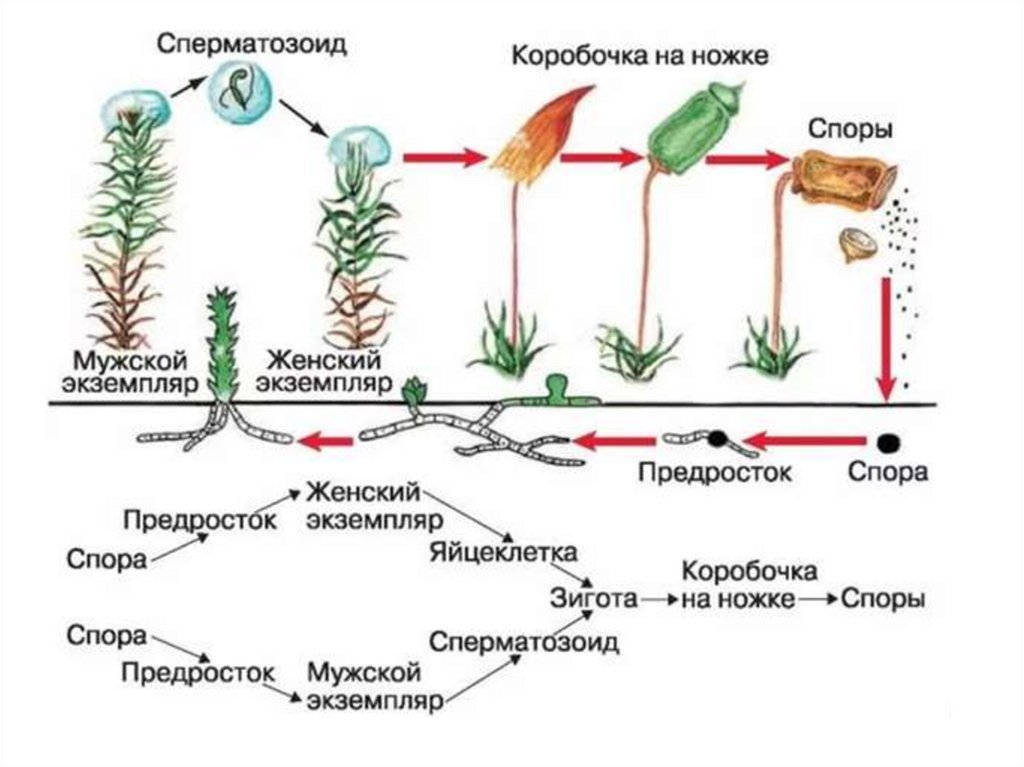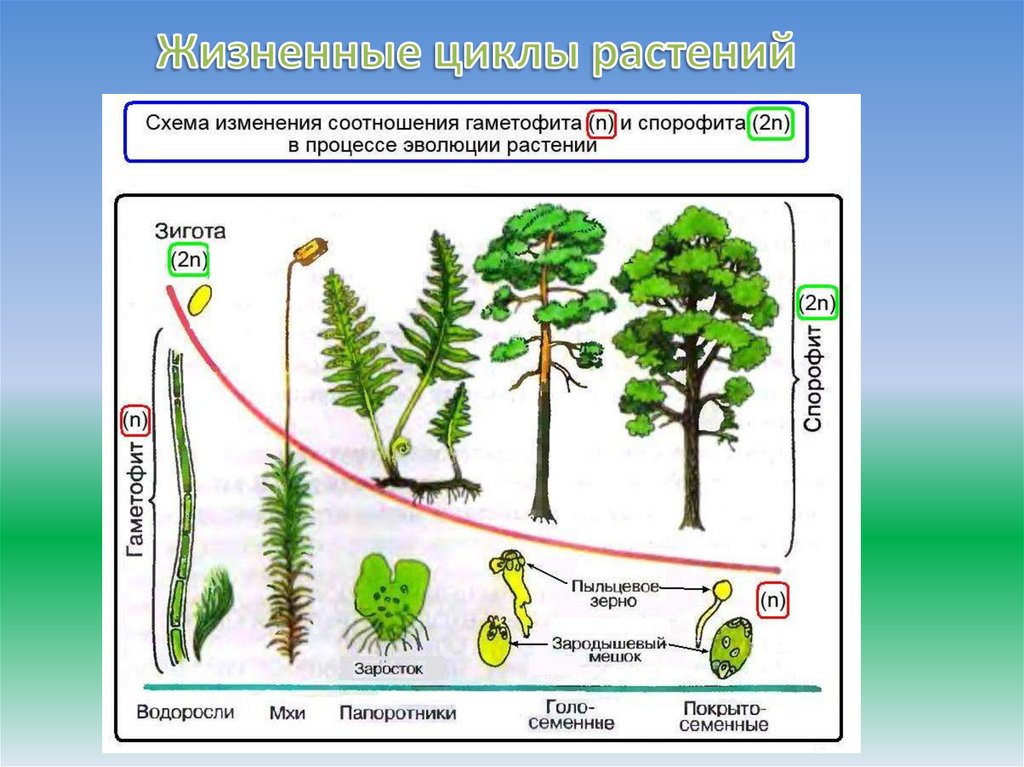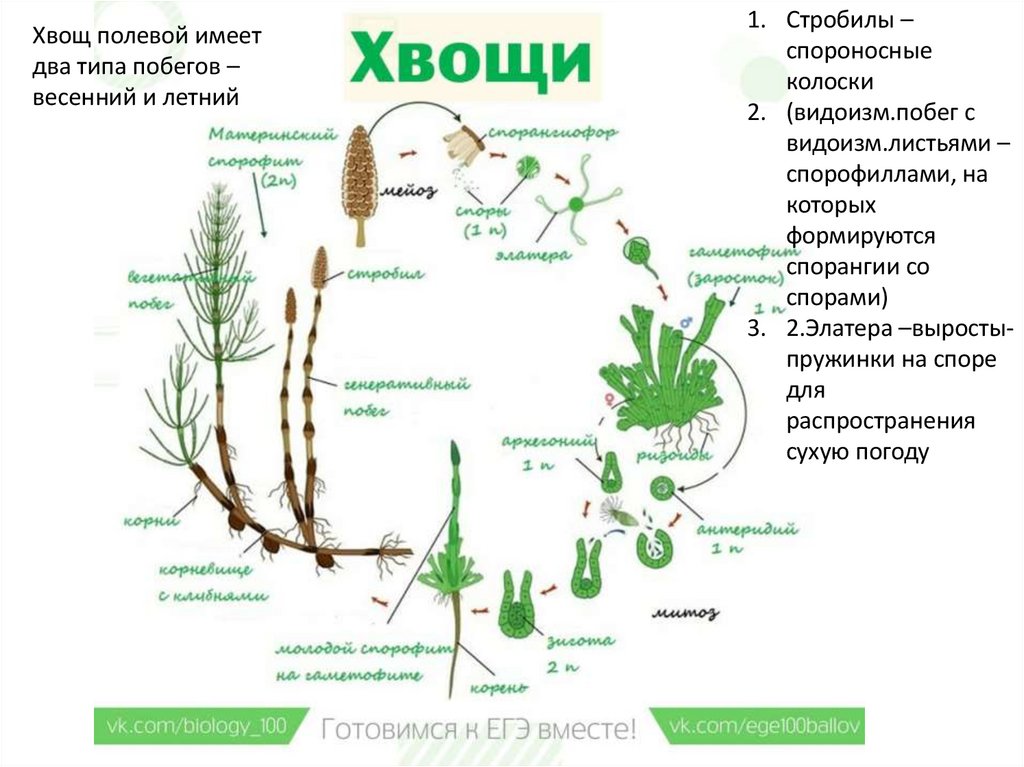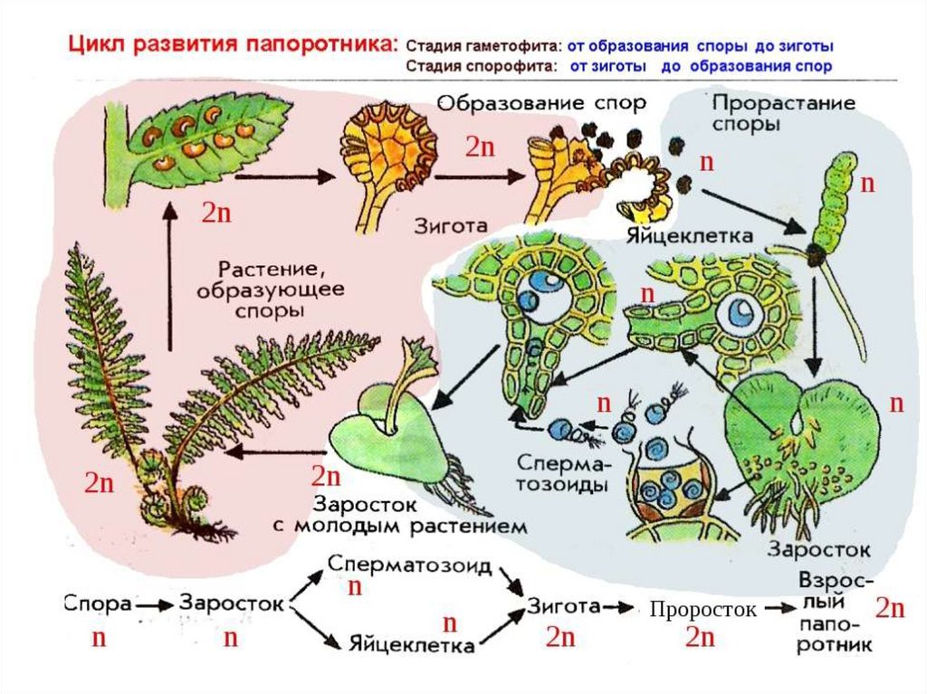 Споры образуются на диплоидном спорофите мейозом, набор хромосомв них гаплоидный