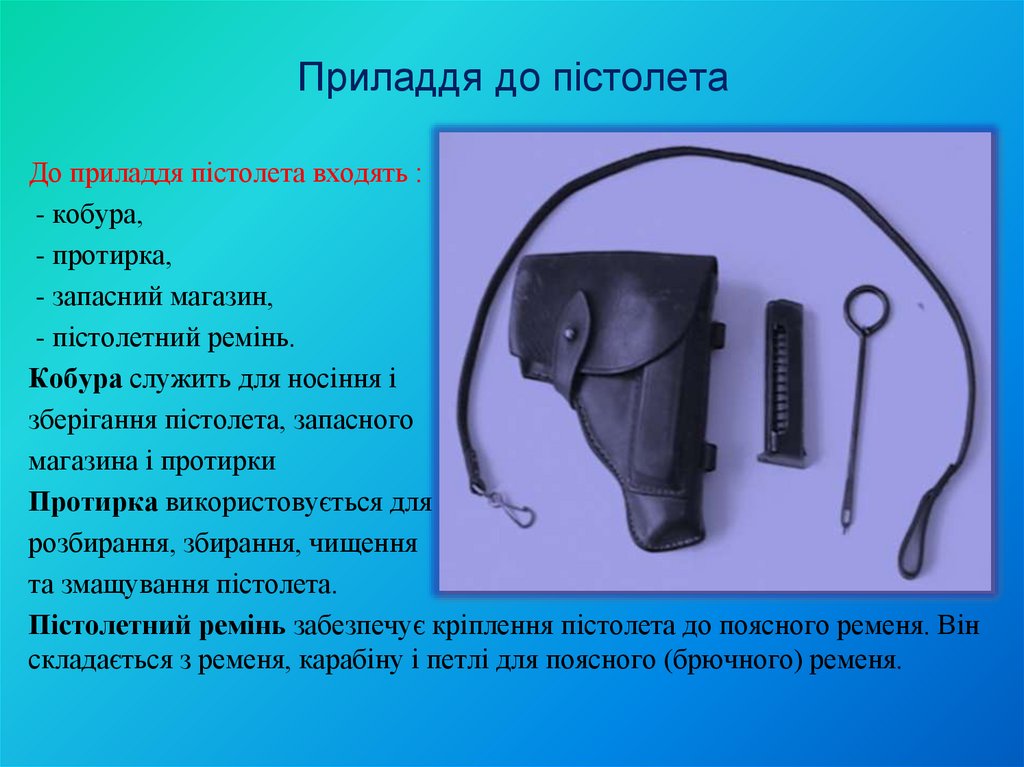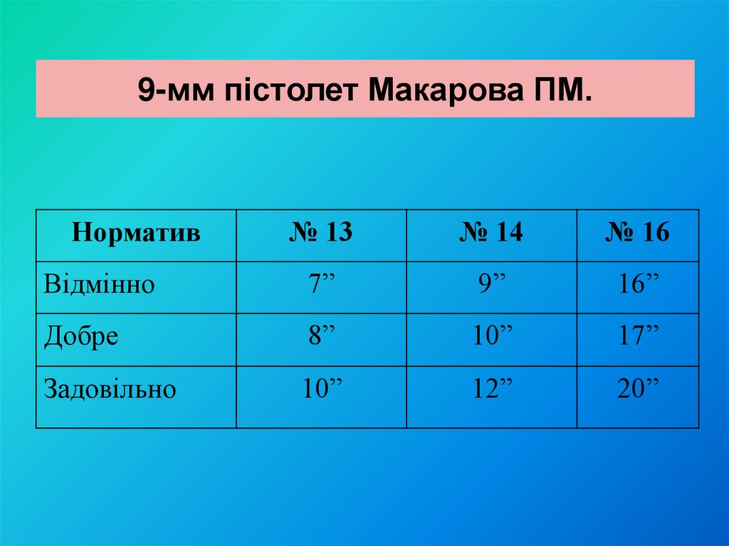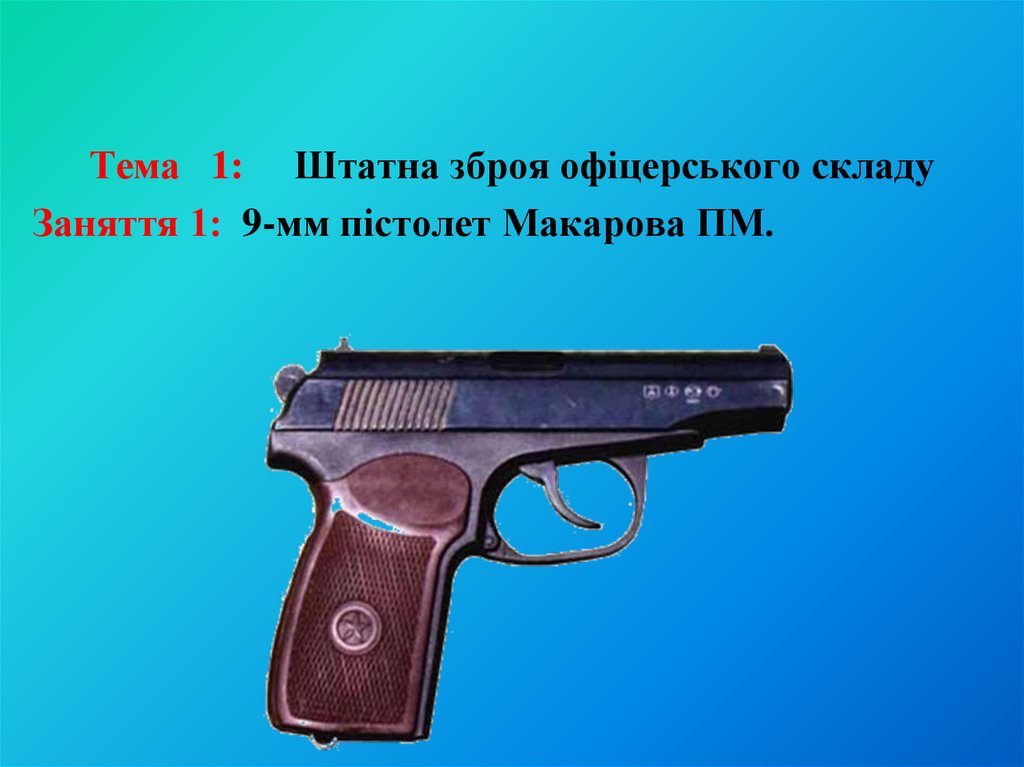 Тема 1: Штатна зброя офіцерського складуЗаняття 1: 9-мм пістолет Макарова ПМ.