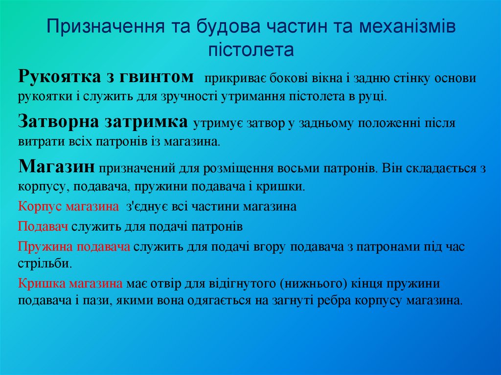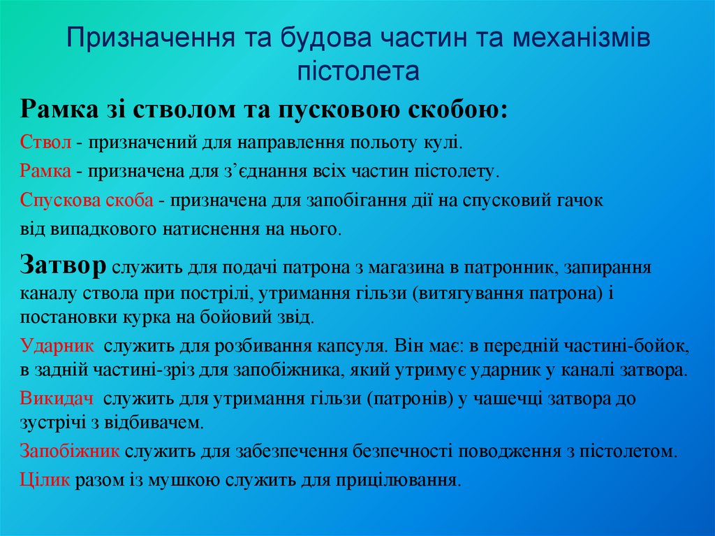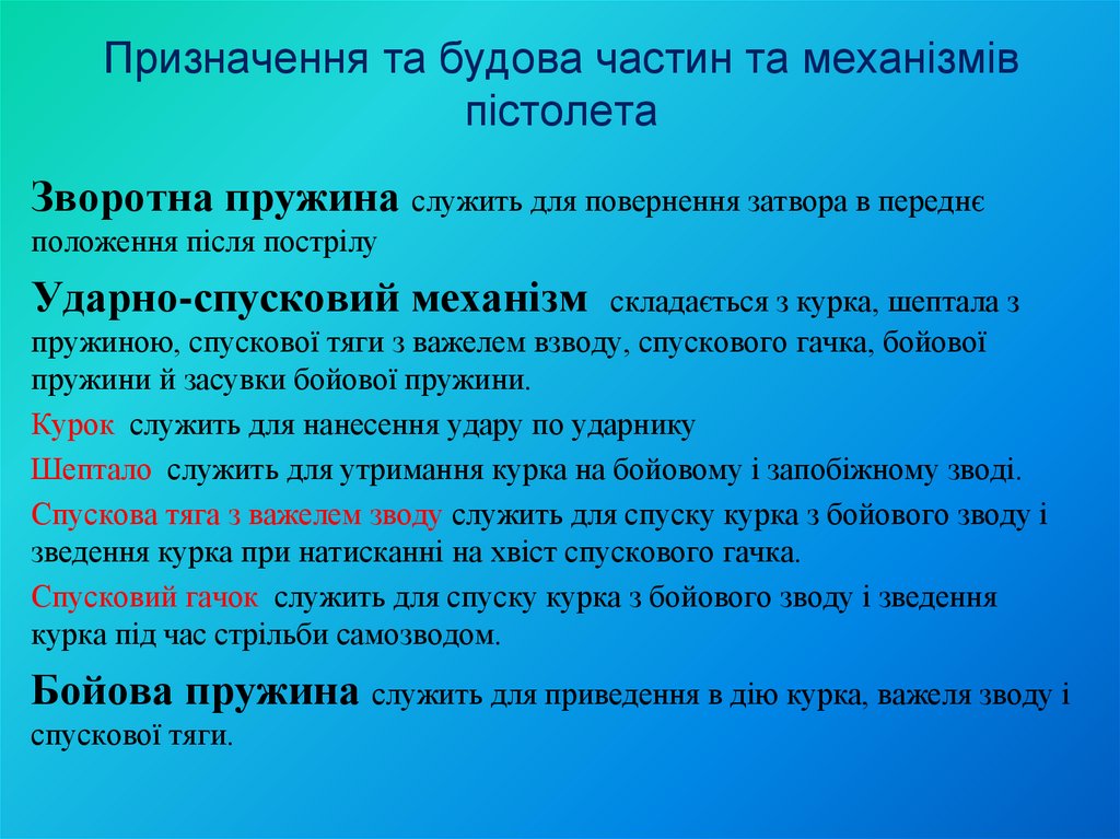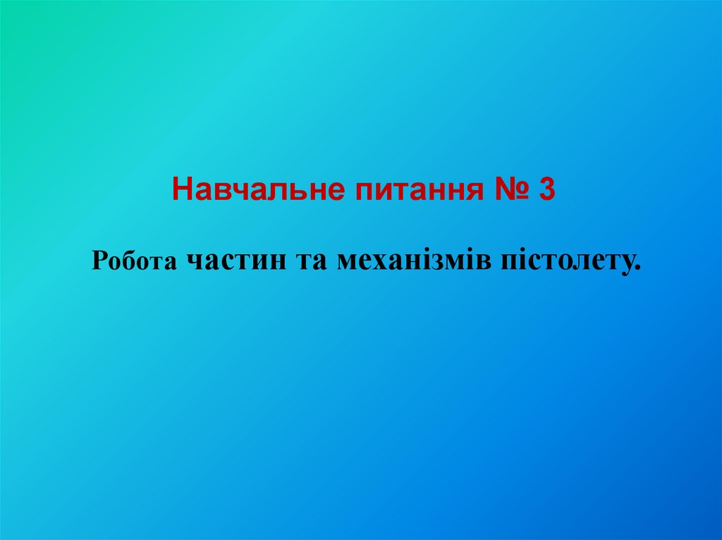 Навчальне питання № 3Робота частин та механізмів пістолету.