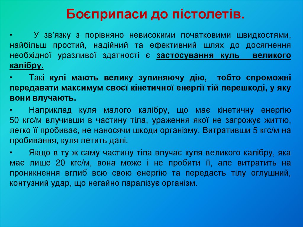 Такі кулі мають велику зупиняючу дію, тобто спроможні