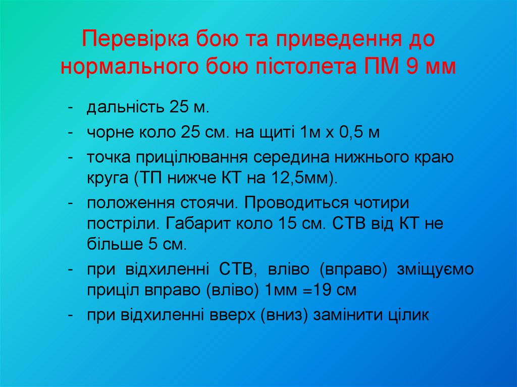 30. Перевірка бою та приведення до нормального бою пістолета ПМ 9 мм