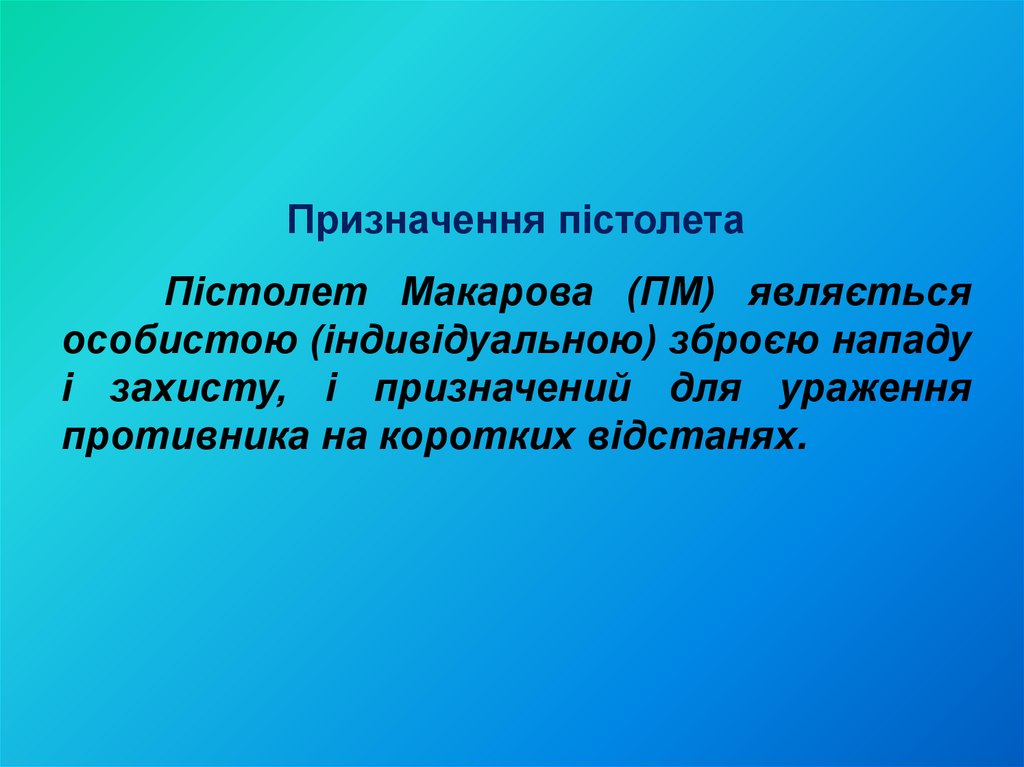 Призначення пістолетаПістолет Макарова (ПМ) являється