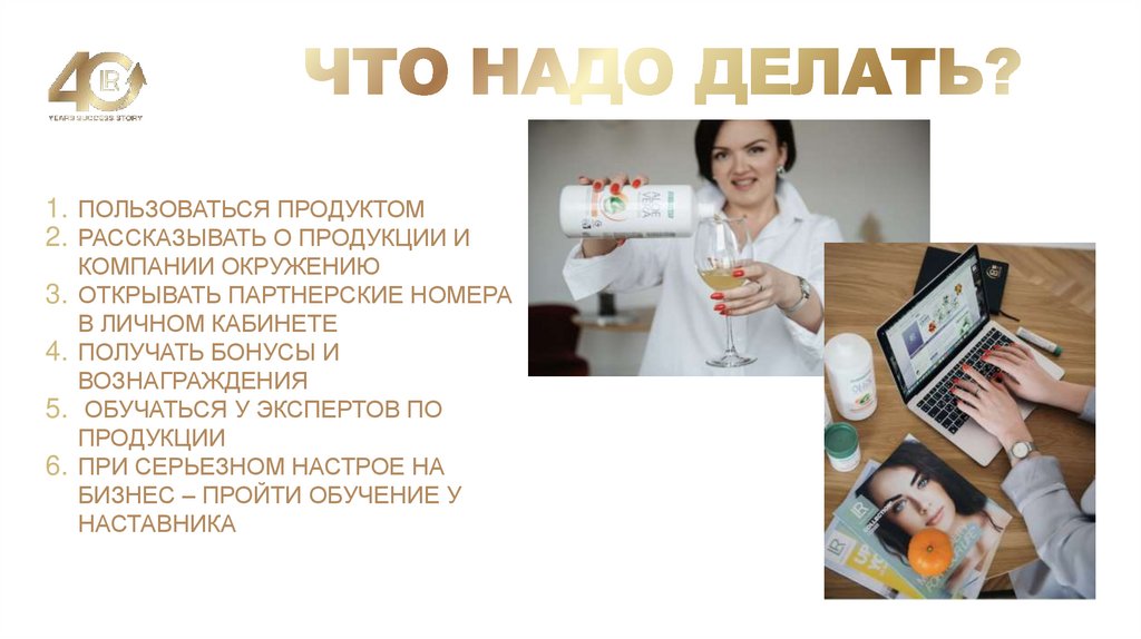 1. ПОЛЬЗОВАТЬСЯ ПРОДУКТОМ2. РАССКАЗЫВАТЬ О ПРОДУКЦИИ И