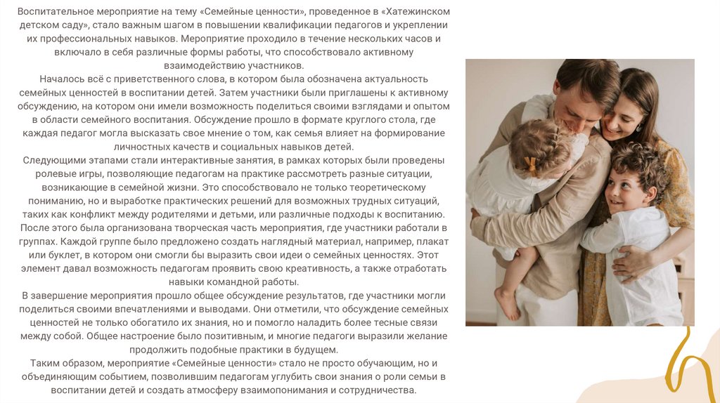 Воспитательное мероприятие на тему «Семейные ценности», проведенное в «Хатежинскомдетском саду», стало важным шагом в повышении квалификации педагогов и укреплении