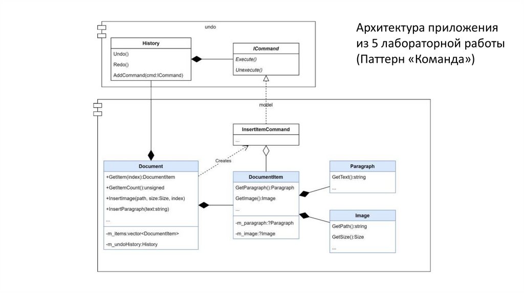 • Распорядитель не знает о классах, задающих внутреннюю структуру