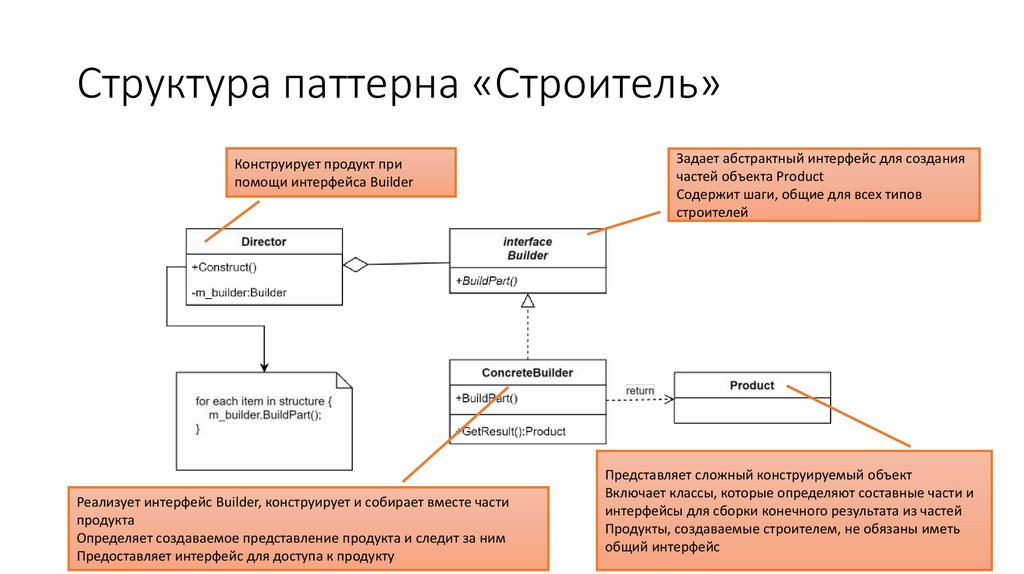 • Чтобы добавить новый продукт, нужно добавить новую реализацию Строителя