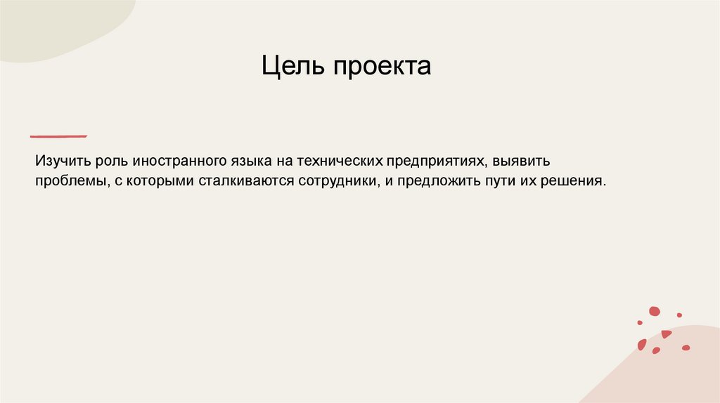 Цель проектаИзучить роль иностранного языка на технических предприятиях, выявить
