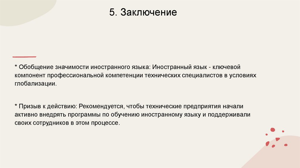 5. Заключение* Обобщение значимости иностранного языка: Иностранный язык - ключевой