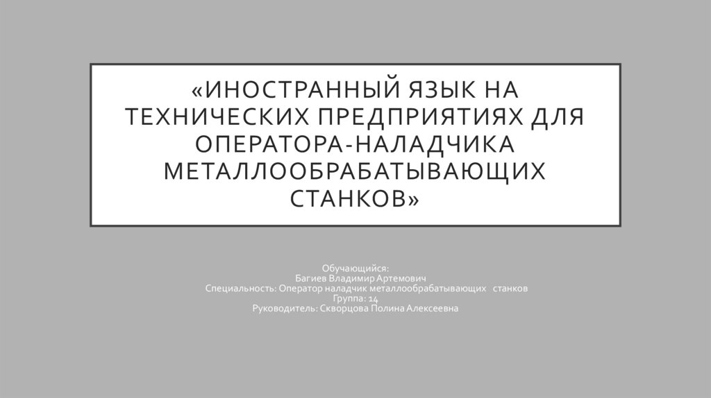 Иностранный язык на технических предприятиях для оператора-наладчика металлообрабатывающих станков