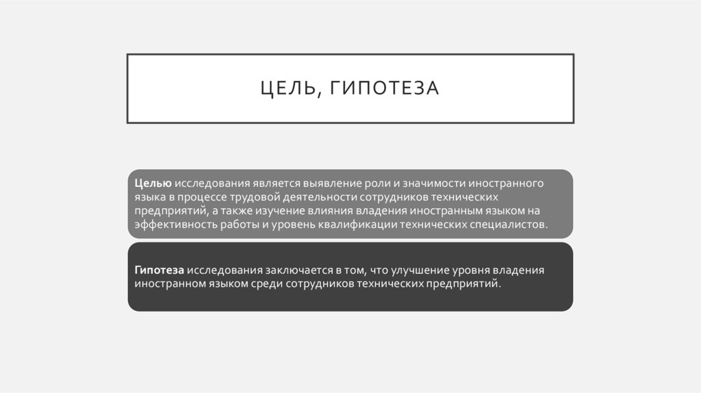 ЦЕЛЬ, ГИПОТЕЗАЦелью исследования является выявление роли и значимости иностранного