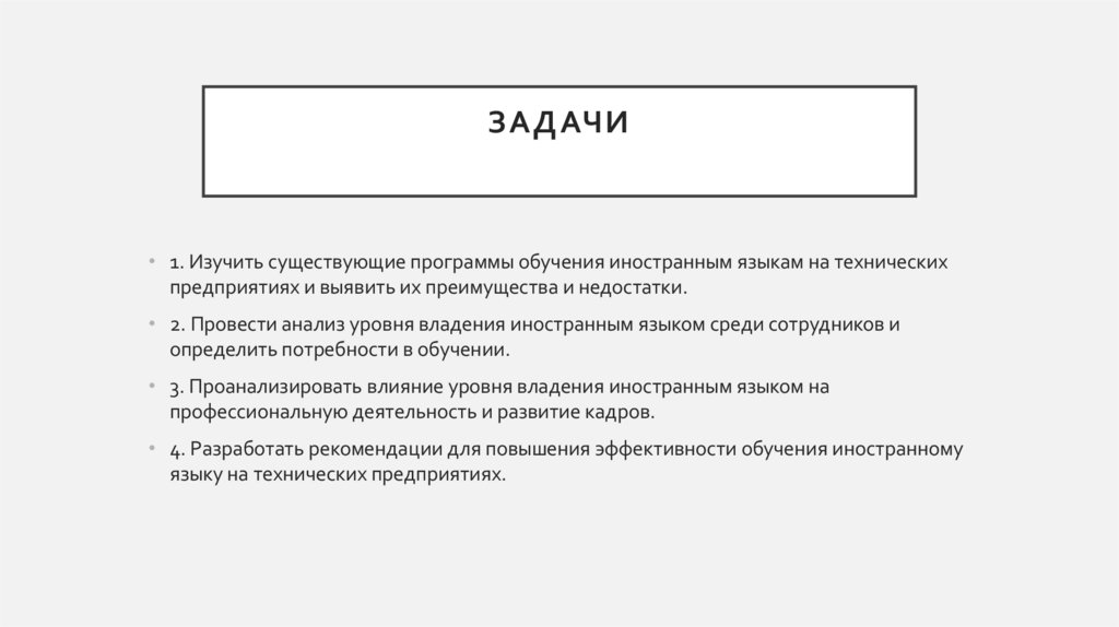 ЗАДАЧИ• 1. Изучить существующие программы обучения иностранным языкам на технических