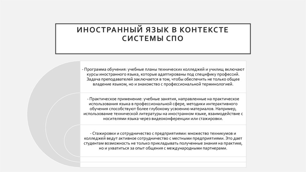 ИНОСТРАННЫЙ ЯЗЫК В КОНТЕКСТЕСИСТЕМЫ СПО