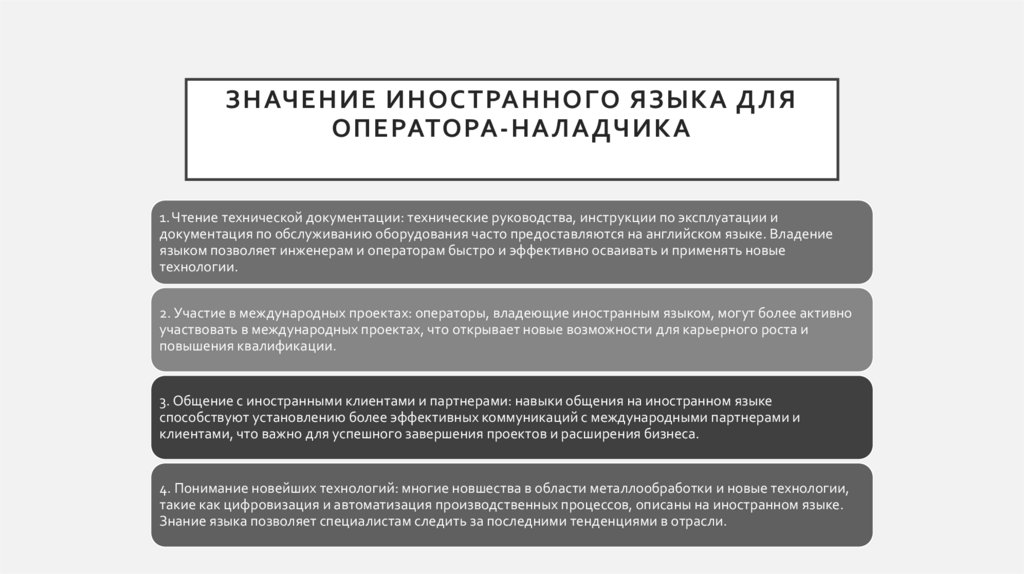 ЗНАЧЕНИЕ ИНОСТРАННОГО ЯЗЫКА ДЛЯОПЕРАТОРА-НАЛАДЧИКА