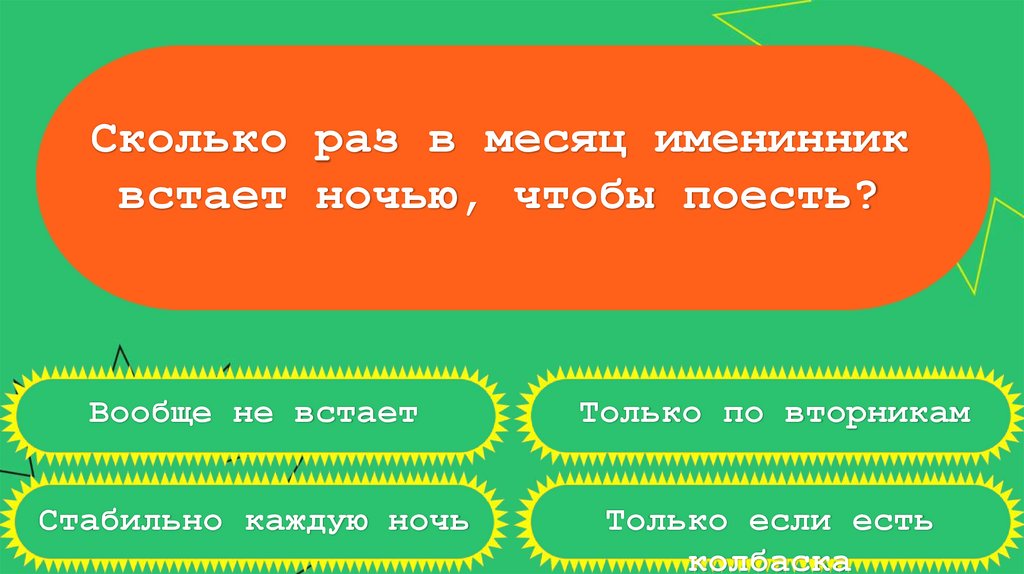 Сколько раз в месяц именинниквстает ночью, чтобы поесть?