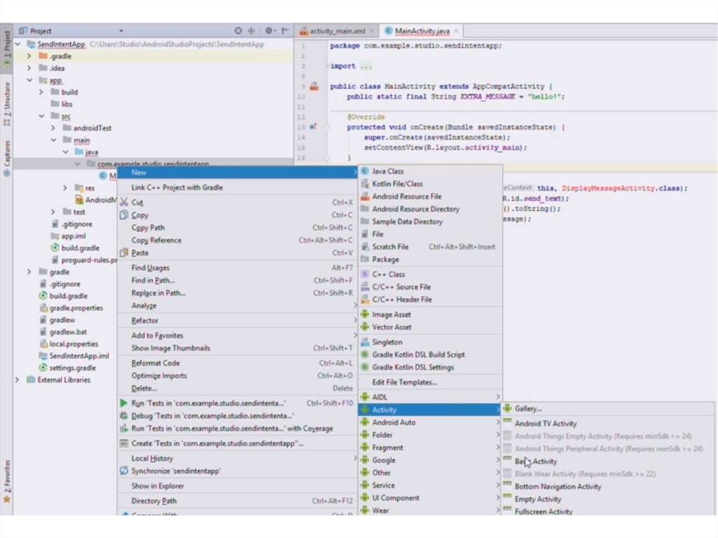 Активити и интентыСоздание приложения «Передача данных»