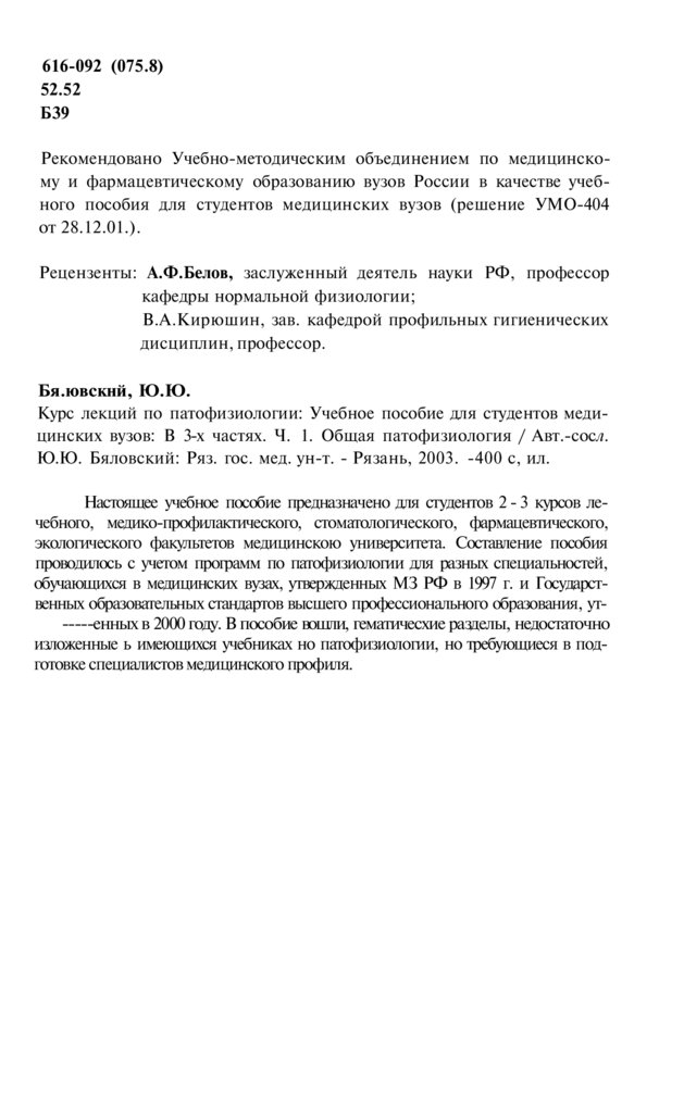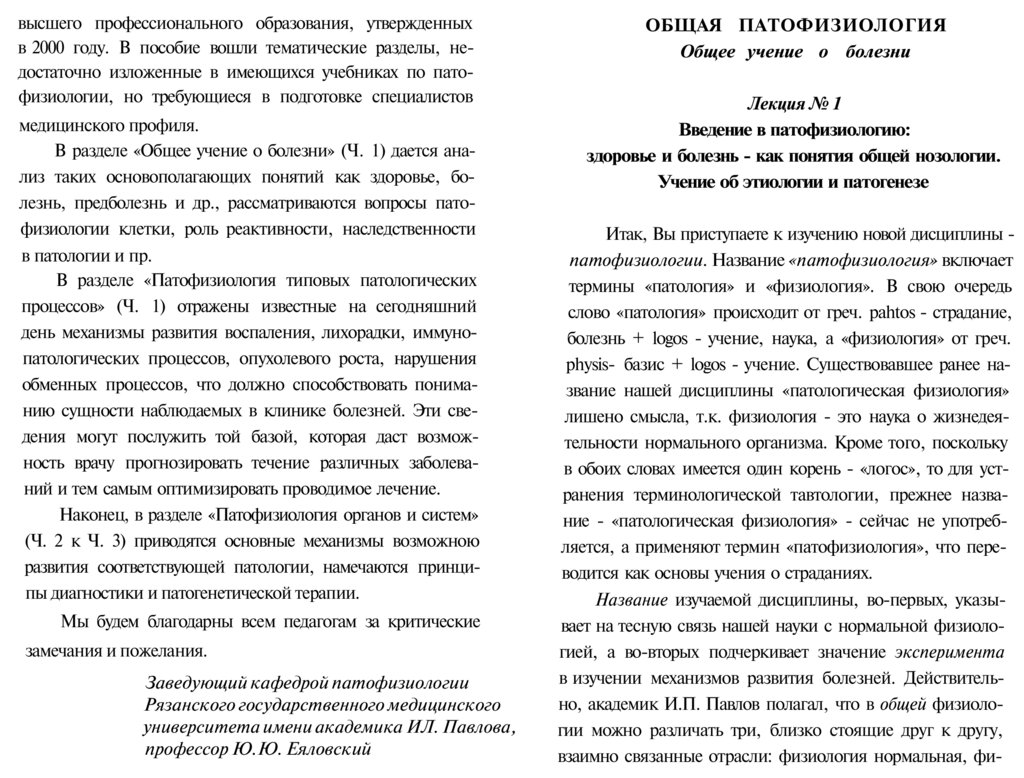 изложенные ь имеющихся учебниках но патофизиологии, но требующиеся в подготовке специалистов медицинского профиля.