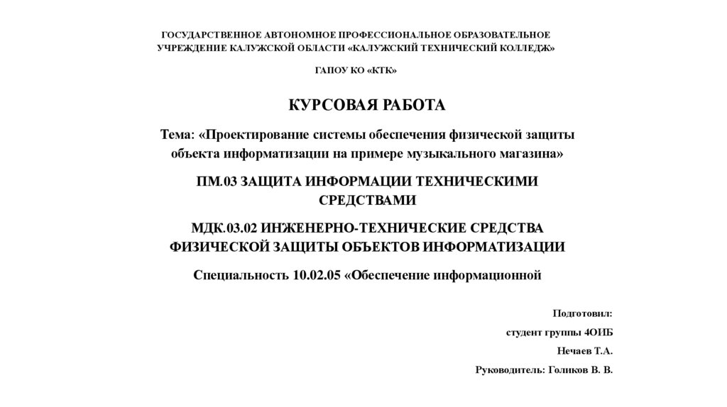 ГОСУДАРСТВЕННОЕ АВТОНОМНОЕ ПРОФЕССИОНАЛЬНОЕ ОБРАЗОВАТЕЛЬНОЕУЧРЕЖДЕНИЕ КАЛУЖСКОЙ ОБЛАСТИ «КАЛУЖСКИЙ ТЕХНИЧЕСКИЙ КОЛЛЕДЖ»
