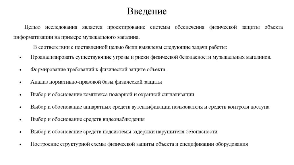 ВведениеЦелью исследования является проектирование системы обеспечения физической защиты объекта