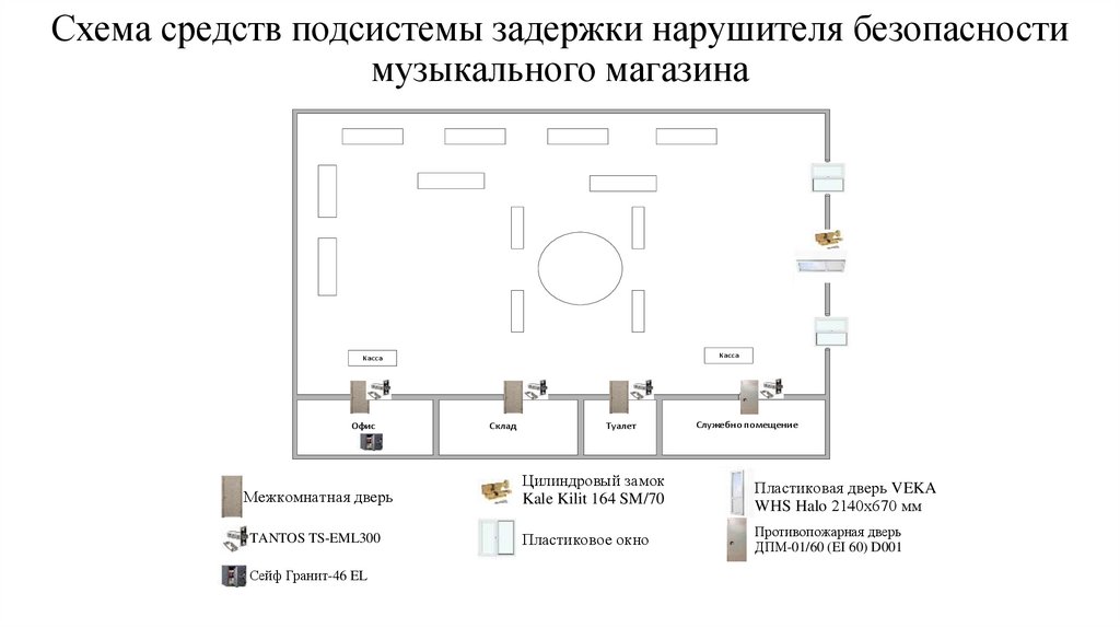 Схема средств подсистемы задержки нарушителя безопасностимузыкального магазина