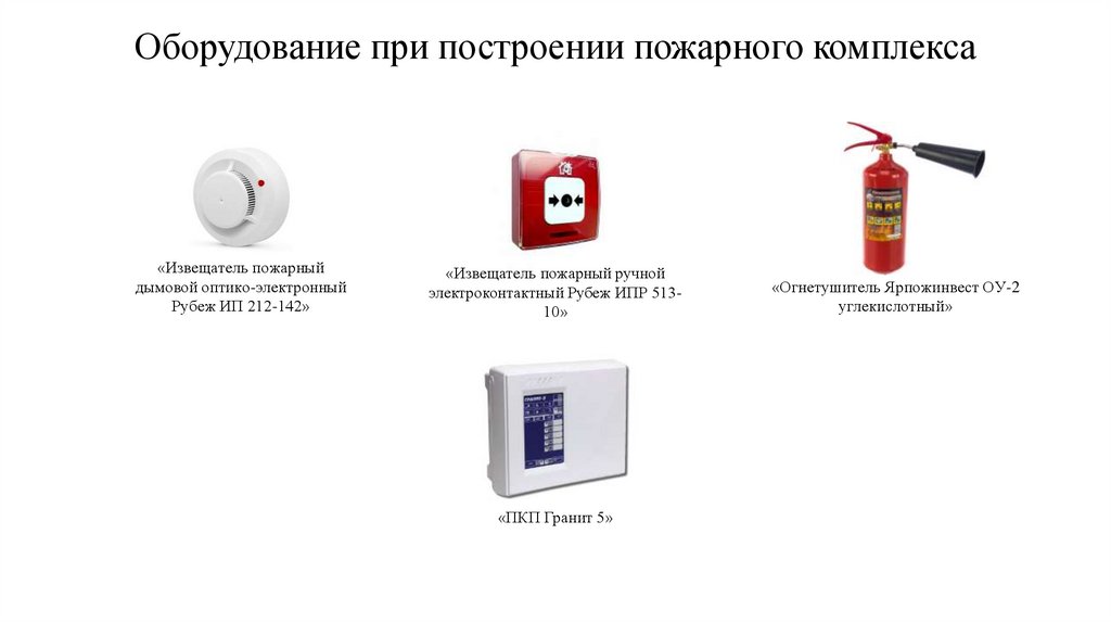 Оборудование при построении пожарного комплекса«Извещатель пожарный