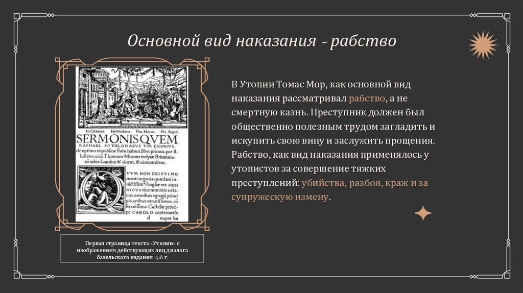 Основной вид наказания - рабствоВ Утопии Томас Мор, как основной вид
